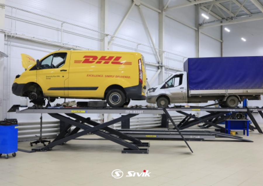 • Подъемник оборудован длинными сдвижными пластинами для удобной регулировки задней оси автомобилей с разной колесной базой.