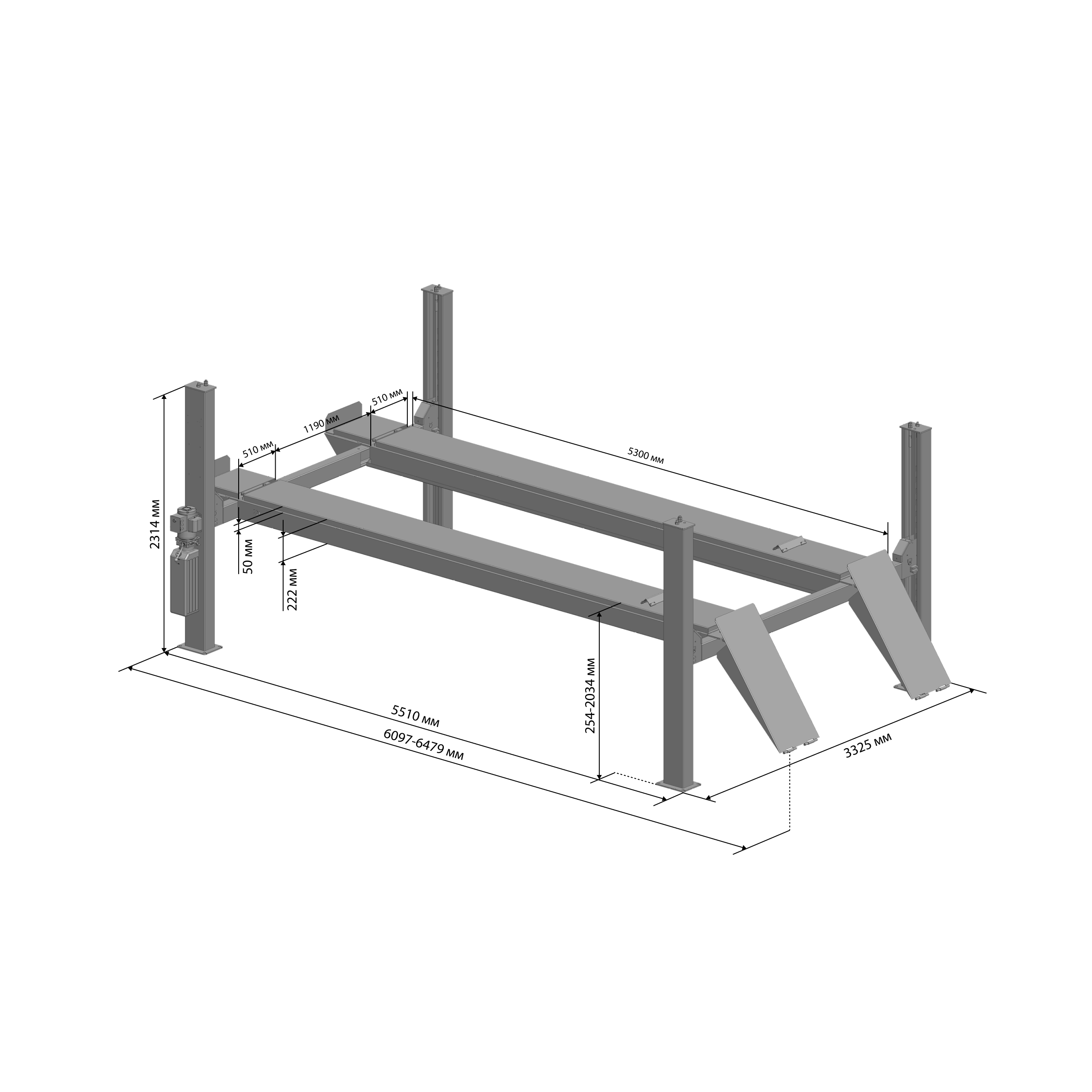 • Удлиненный четырехстоечный подъемник для работы с автомобилями общей массой до 6,5 тонн