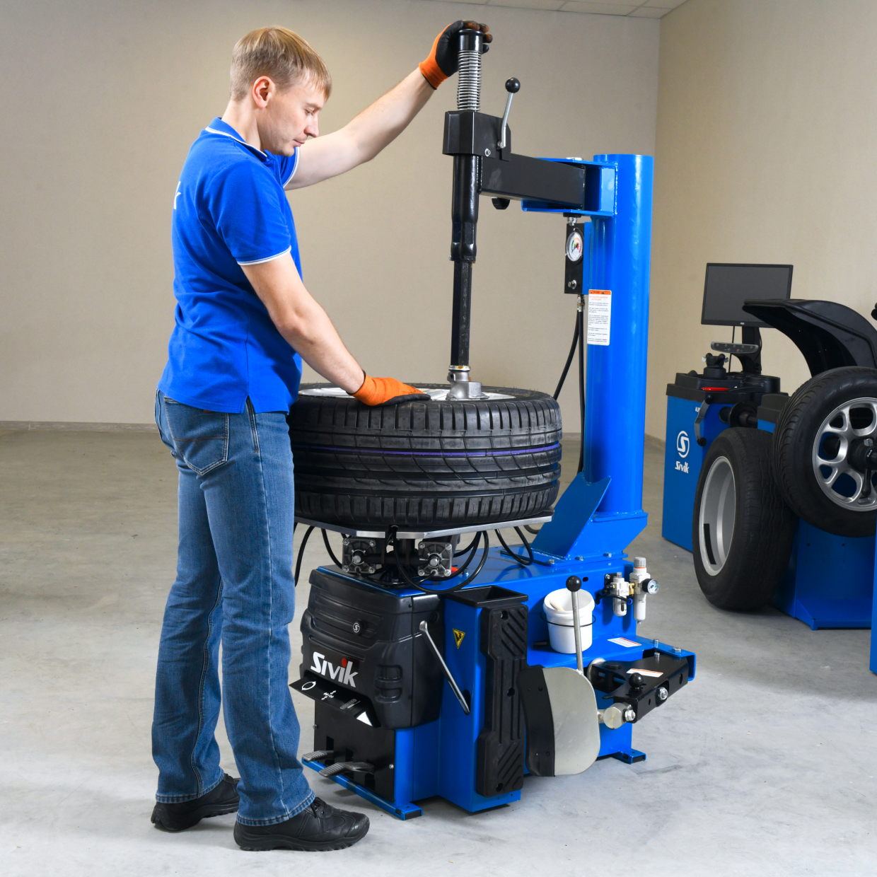 • Шиномонтажный полуавтоматический станок со взрывной накачкой