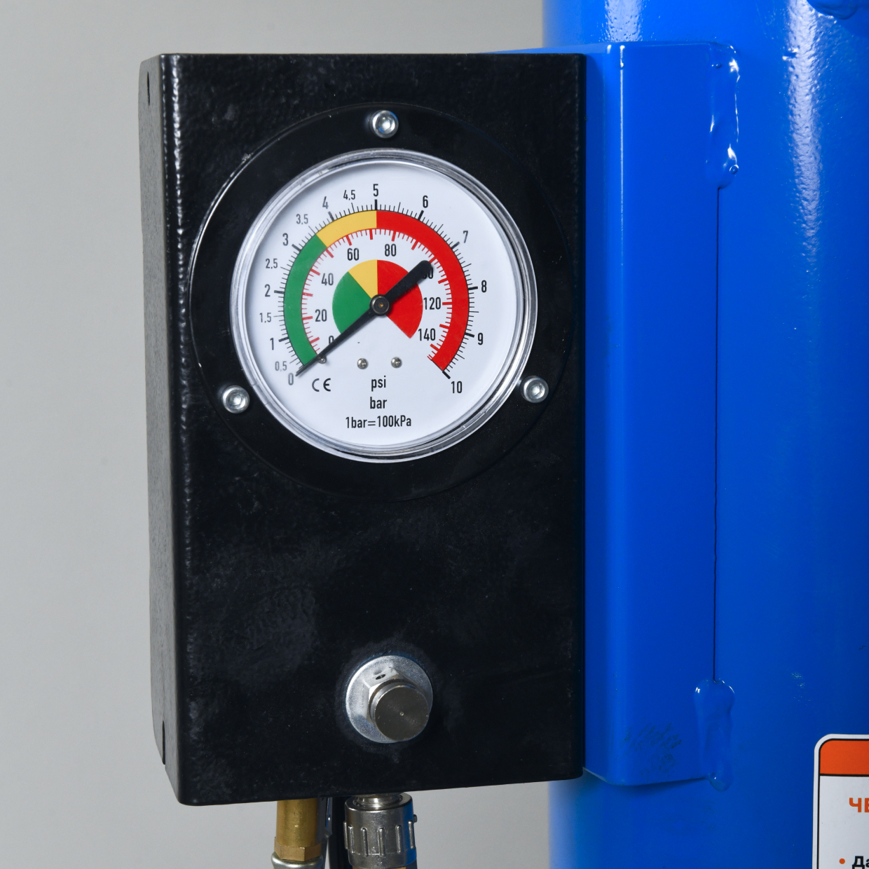 • Манометр закреплен на колонне. Это профессиональное решение, которое позволяет исключить повреждения манометра в процессе эксплуатации станка